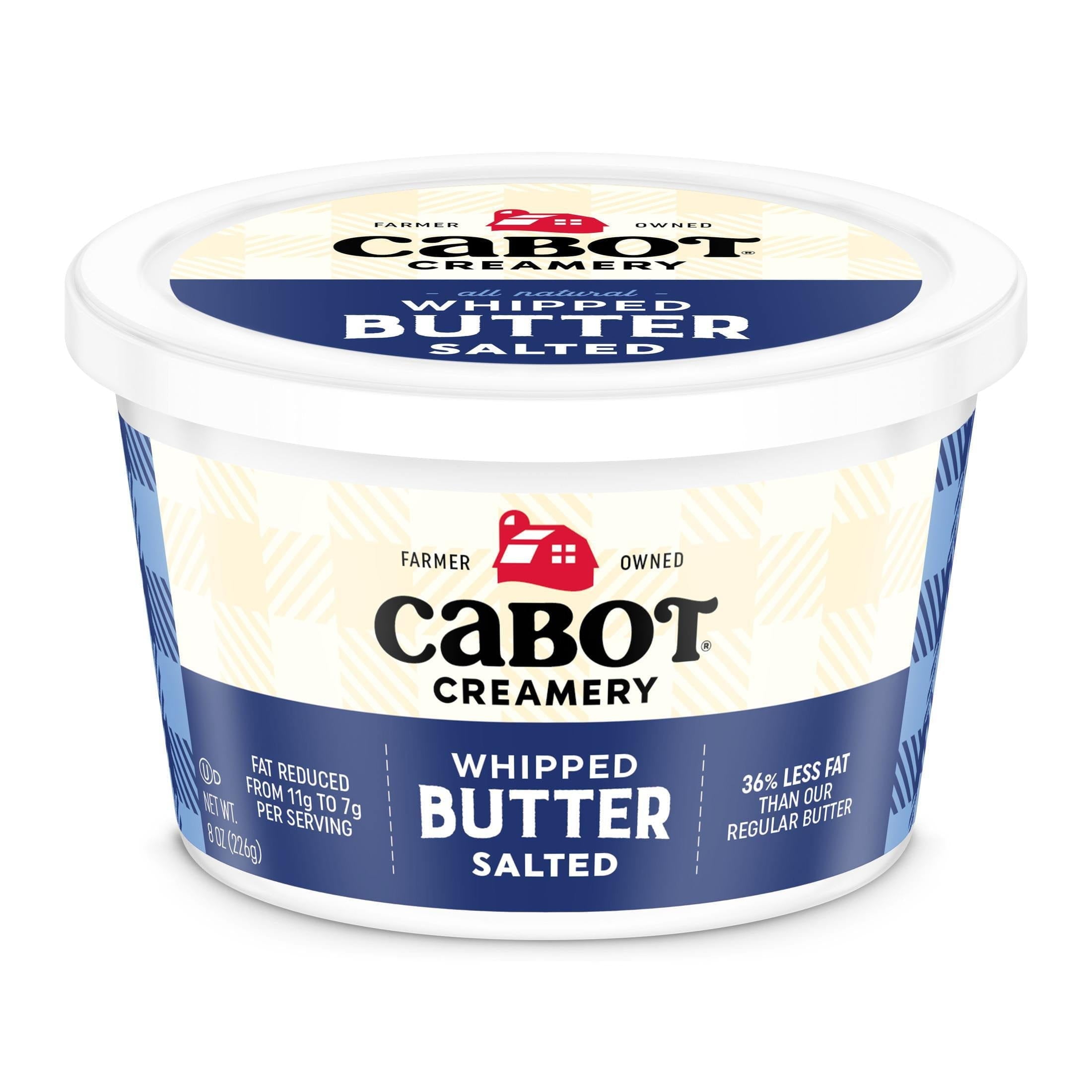 A package of Cabot Creamery Salted Butter, 8 oz, in blue and cream, displays the Cabot logo and America’s Best Butter award—known for its rich, creamy flavor.